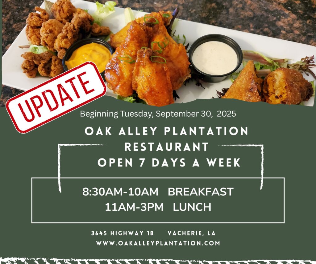 Plan Your Visit to Oak Alley Plantation Restaurant & Inn